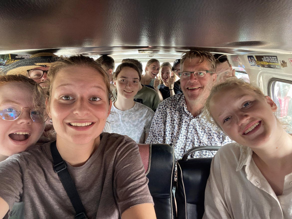 Na het ontbijt hebben we even wat groepsfoto's gemaakt met Peter, de eindverantwoordelijke bij Bombolulu, en daarna zijn we doorgelopen naar de openbare weg om met het Keniaanse "OV" te gaan. Twee keer in de matatu en daarna in de tuk tuk. Na een avontuurlijke trip kwamen we aan bij APDK waar onze eerste "werkdag" begon.