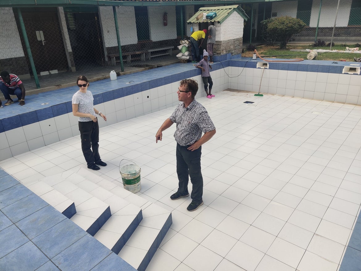 Onze groep werd in verschillende groepjes opgedeeld. Een deel ging in de keuken helpen, een deel ging het zwembad schoonmaken, een deel hielp bij de orthopedische instrumentmakerij en een deel ging meelopen bij de prothese afdeling. Maar uiteraard ging er ook veel aandacht uit naar de kinderen. Wat een plezier bij die kinderen, heel inspirerend!